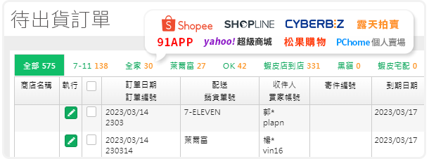 各大電商平台訂單一鍵匯入出貨速度+ 管理效率+ 買家好評+