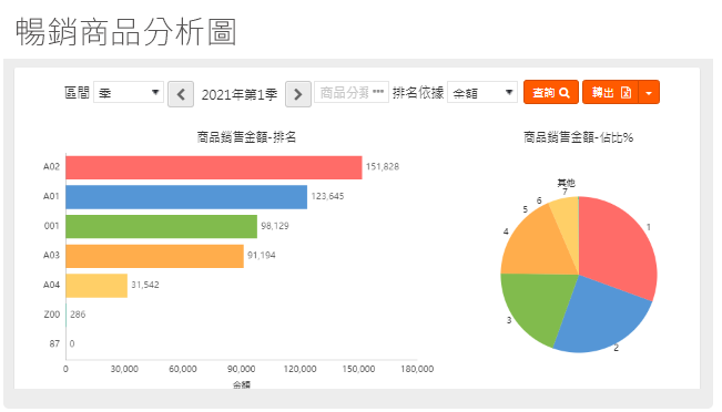 可將商品銷售數量、金額與毛利獨立排名,快速查看哪款賣得好、賺得多