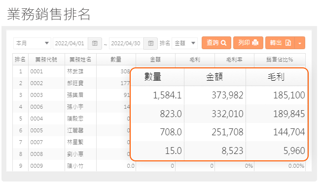 獎金發放最佳參考依據,可計算銷售數量、金額與毛利