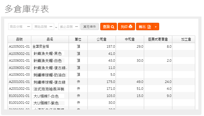 門市、倉庫與寄倉各點數量雲端同步,掌握現貨銷售或可調撥數量最新狀況