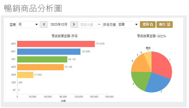 可將商品銷售數量、金額與毛利獨立排名,快速查看哪款賣得好、賺得多