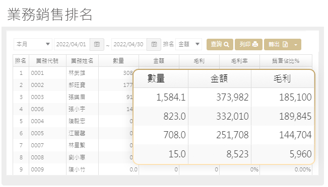 獎金發放最佳參考依據,可計算銷售數量、金額與毛利