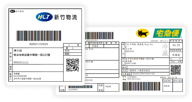 整合新竹物流、黑貓宅急便兩大物流,託運資料自動化傳輸,不需要手動輸入或上傳資料,快速完成交件,即時更新物流狀態