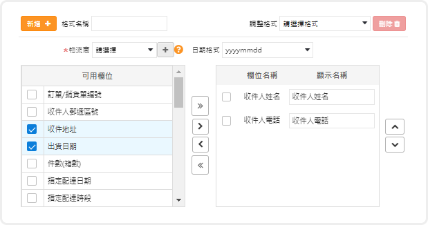 可依據不同的業務需求,自由設定託運單格式與對應的資訊欄位,提高寄件內容準確性、節省時間